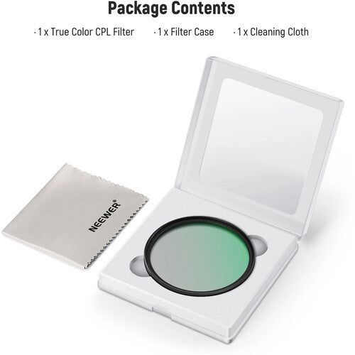 Key Features Circular Polarizer Filter Helps Eliminate Reflections and Glare Reduces Haze in Landscapes Greater Color and Tonal Saturation Neewer True Color CPL Filter Overview Compatible with lenses with 77mm filter threads, this True Color CPL Filter from Neewer is a circular polarizer filter designed...View more