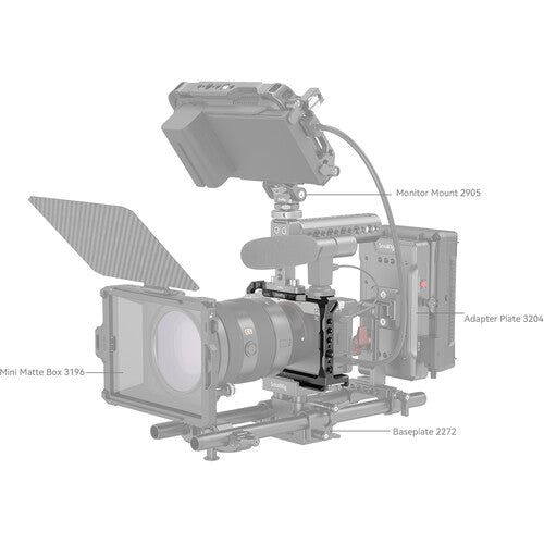 The lightweight Camera Cage from SmallRig provides accessory mounting and protection for your a7C mirrorless camera. The camera mounts onto this formfitting aluminum cage with an integrated 1/4"-20 camera mounting screw, anti-twist pins, a side lock, and padding on the base, incorporating a full-featured anti-twist design to protect the camera. It maintains access to the camera's controls and hot shoe, and it features a variety of mounting options.
