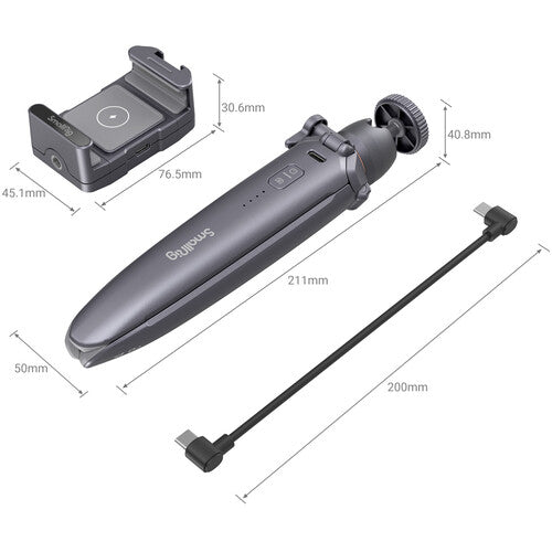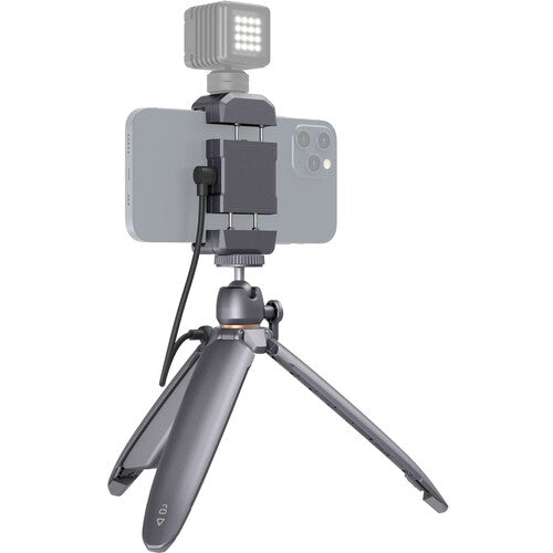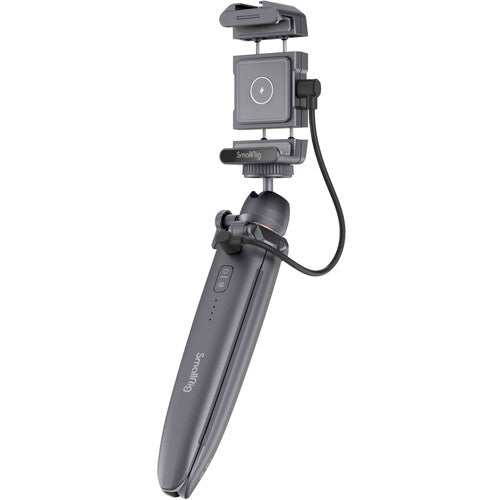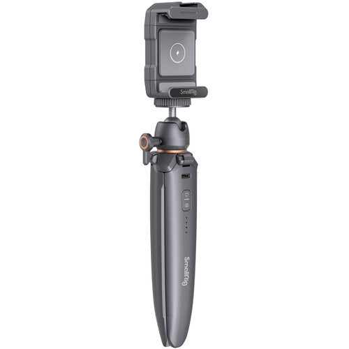 Mobile content creators can enjoy peace of mind when shooting with the Charging Tripod with Smartphone Holder from SmallRig. Since the tripod doubles as a charger, you can take longer setting up shots or extend your overall session longer than you could with a regular tripod. A 4000mAh battery is built into one of the tripod legs, along with an integrated power switch, battery level indicator, and USB Type-C port. You can charge your smartphone or compatible digital camera via the USB Type-C port or, if using a Qi-compatible phone, you can use the wireless charging pad integrated into the included phone holder.