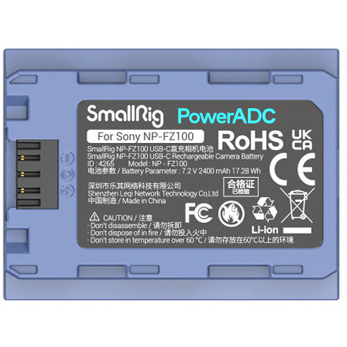 The NP-FZ100 USB-C Rechargeable Battery from SmallRig has been engineered for select Sony cameras that use the NP-FZ100 battery. With a 2400mAh capacity, the battery can last for up to 3.8 hours of video recording and up to 680 still shots. A built-in USB-C port and included cable allows you to charge it from any USB-C compatible device, saving you the need to bring a separate charger.