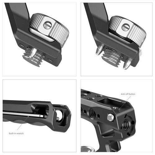 In addition to one 15mm rod bracket, this versatile handle sports one locking and two standard cold shoe mounts, as well as multiple 1/4"-20 and 3/8"-16 ARRI-style anti-twist threads. The handle is constructed with durable aluminum and stainless steel components.
