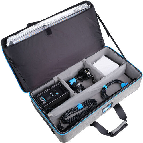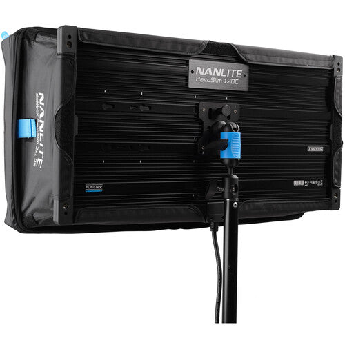 Thin, lightweight, and bright, this 23.7 x 12.1" PavoSlim 120C RGB LED Panel from Nanlite is an ideal choice for shoots where color accuracy and sophisticated control are needed. Offering a wide variable color temperature range of 2700 to 7500K and 0-100% dimming, this slim and powerful panel seamlessly integrates into ambient light situations, letting you match the output of most fixtures. The panel's high CRI/TLCI ratings of 96/97 provide high color accuracy and rendering, and multiple onboard and wireless control options make for easy creative adjustments. Fifteen built-in special effects are included for hue loop, CCT loop, intensity Loop, flash, pulse, storm, police car, TV, paparazzi, candle/fire, disco, bad bulb, firework, explosion, and welding. Additionally, two diffusers, a softbox, and an eggcrate are also included for modifying and adjusting the panel's output.
