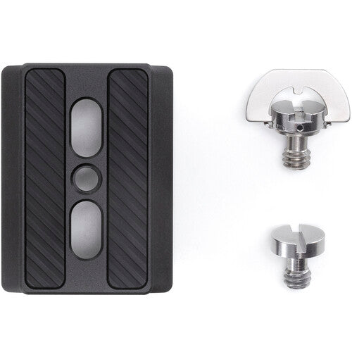 Mount and unmount your camera quickly and easily from the RS 3 Pro, RS 3, RS 2, or RSC 2 gimbal stabilizer with this Upper Quick Release Plate from DJI. The plate features two mounting slots, and it features a 1/4"-20 thread and two M4 threads to mount a Focus Motor Rod Mount kit onto the side.