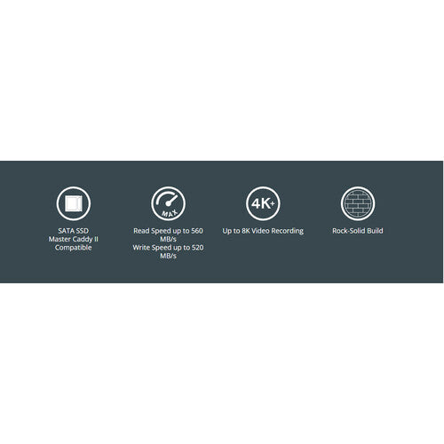 Although 20% smaller than an average SSD, the SSDmini makes no concession to size, and it features formidable up to 560 MB/s sequential read speed with 520 MB/s sustained read speed, and up to 540 MB/s sequential write speed with 500 MB/s sustained write speed. Incorporating Stable Stream technology, you don't drop any frames. The SATA III connector enables connecting to a standard SATA III port when it is time to transfer your footage.