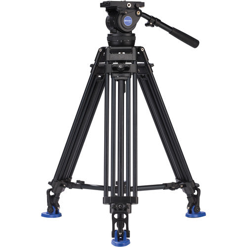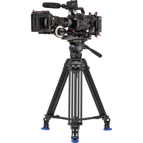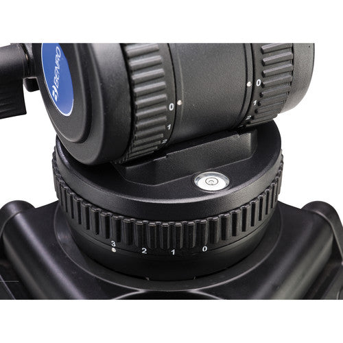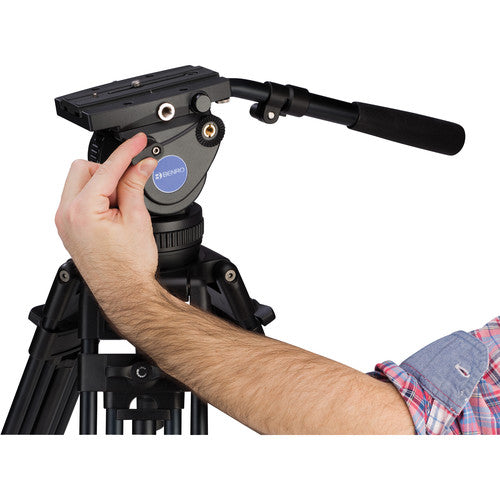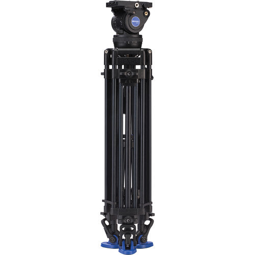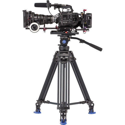 The 2-stage, 3-section twin-leg aluminum tripod incorporates a 100mm bowl and offers sturdy support for the BV10 head. It features oversized quick positive leg locks for a simple and fast setup, an adjustable/removable mid-level spreader, and dual spiked feet with removable rubber pads. The tripod system extends to a maximum height of 64.4" while getting as low as 29". A carry case and shoulder strap are included.