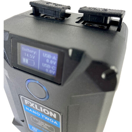 Key Features 98Wh Lithium-Ion Gold Mount Battery Ultracompact, Travel-Friendly Size LCD Status Screen, Rubber Port Covers Supports up to 10A Continuous Draw 2 x D-Tap Output Ports 1 x USB-A Output, 1 x USB-C Input/Output Fxlion Nano Two Overview The 98Wh Fxlion...View more