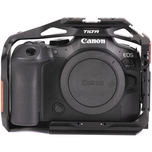 Protect and add accessory mounting options to your camera using the black Tilta Full Camera Cage for R6 Mark II. This cage provides all-around protection, an Arca-type bottom plate, and compatibility with the separately available Tilta 15mm LWS Baseplate. Top and left-side NATO rails enable you to add handles for horizontal or vertical capture. Accessory mounting options include one rosette, two shoe mounts, multiple anti-twist 1/4"-20 threads, and M3 lens support threads. The R6 Mark II cage comes with a micro-HDMI/USB-C cable clamp, a magnetic flathead screwdriver, and two Allen keys.