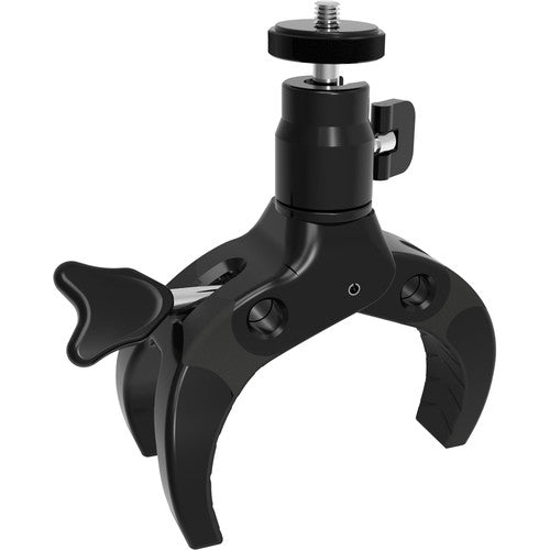 Designed for attaching Marshall miniature and compact cameras to trusses, railings, and poles, this Marshall Electronics Pole Clamp features a 3" maximum jaw width and a ball mount for attaching the camera. The ball mount, which is removable, provides a 1/4"-20 camera screw and is swivel-adjustable for positioning the camera at desired angles. At full length the Pole Clamp measures 4.5", so it keeps your camera close to the pole while providing enough room to freely swivel-adjust it.