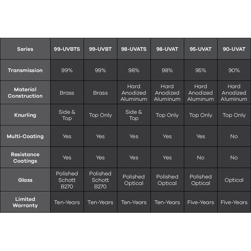 Key Features 5% Light Transmission Multi-Coated Clear UV Protective Filter Polished Optical Glass Hard Anodized Aluminum Slim Filter Ring Top Knurling Chiaro 95-UVAT Overview The 55mm 95-UVAT UV Filter is one of Chiaro’s highly-rated protective UV filters with 95% light transmission. It’s useful for photographers...View more