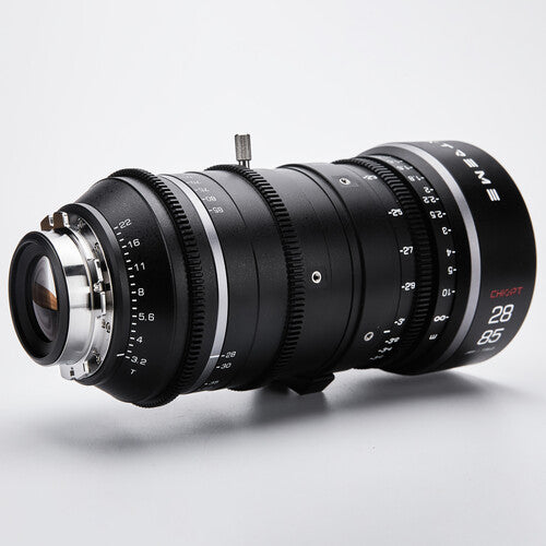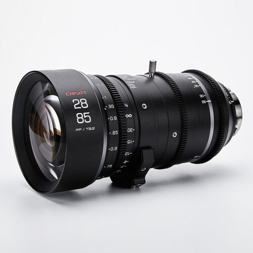 Maintain sharp focus during slow, cinematic zooms for high-end commercial or 8K feature footage with the PL-mount XTREME ZOOM 28-85mm T3.2 Compact Zoom Cine Lens from CHIOPT. Designed for full-frame cameras, this parfocal lens ensures minimal breathing distortion and natural, rounded bokeh.