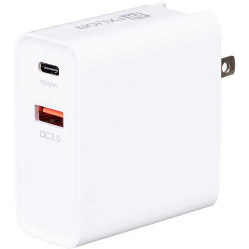 Quickly and efficiently charge your batteries using this 65W USB-A & USB-C Wall Charger from Fxlion. This compact, lightweight wall charger features a standard 100-240 VAC 2-prong wall plug and a USB-A and USB-C PD power output to charge any Fxlion battery and/or accessories such as a smartphone or tablet.