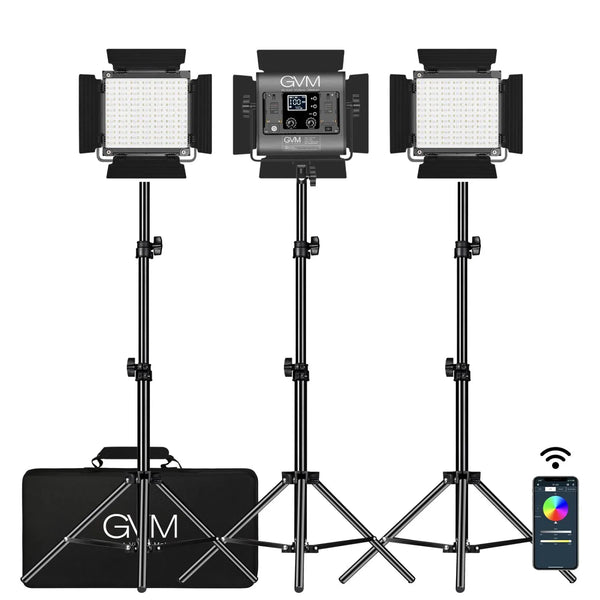 GVM 800D-RGB LED Studio 3-Video Light Kit with Softbox