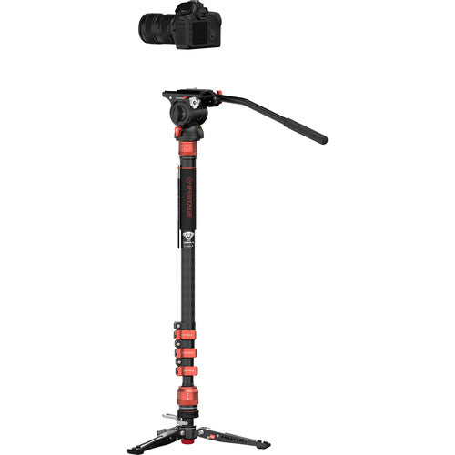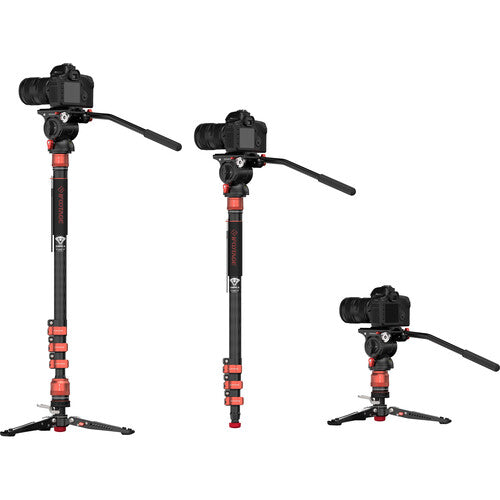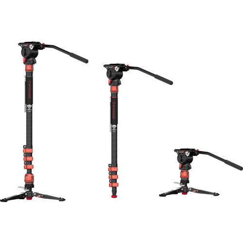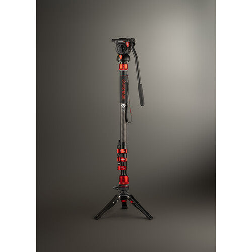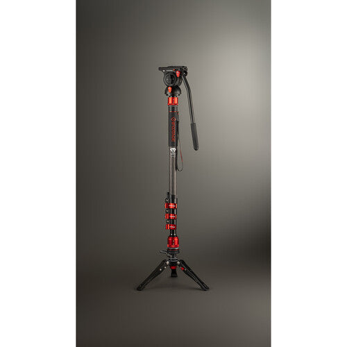 The Cobra 3 Carbon Fiber Monopod with Pedal-Release Mini Tripod Base from iFootage is useful for capturing a variety of shots, from low to high angles. It can be used for action, sports, travel, wildlife, and concert photography, plus vlogging and more. This lightweight, 4-section carbon fiber monopod features flip-lock joints, and has a maximum height of 71.3". The top of the monopod features a quick disconnect collar system that can be unlocked and locked in less than a second.