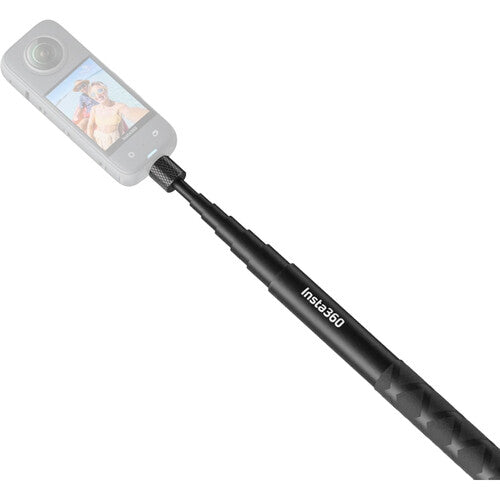 Extend your camera's reach and remove it from your shot altogether with this telescoping black Invisible Selfie Stick for your action camera from Insta360. This durable pole weighs only 4.2 oz and extends from a retracted length of 9.2 to 44.9" long for selfies, action shots, and extreme angles. The stick is also invisible when using the 360 cameras, and it can be removed from your shot in selfie mode. The top of the pole provides a 1/4"-20 screw to mount your camera or accessory.