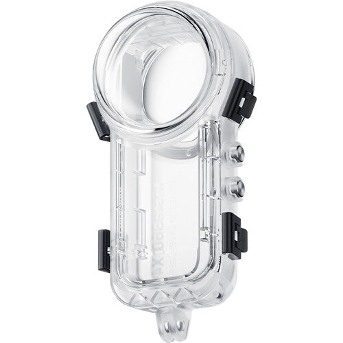 Film improved diving shots from deep below the surface of the water using this Invisible Dive Case from Insta360. Custom-fit to your X4 camera and designed to compensate for water refractions, the clear case maintains the visibility of your touchscreen and controls while ensuring seamless 360° video. It is capable of being submerged up to 164'. A built-in 2-prong mount attaches the case to selfie sticks or mounts of your choice and can be adapted to a 1/4"-20 compatible thread with the included adapter.