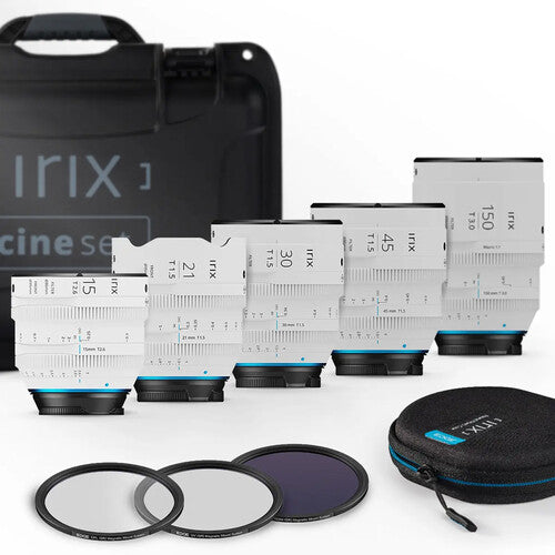 Key Features Full Frame | T1.5/3/4.3 to T16/22/32 15, 21, 30 & 45mm Cine-Style Lenses 150mm T3 Macro 1:1 Cine Lens 9-Blade Aperture, Rounded Bokeh Consistent Color, Contrast & Sharpness Magnetic Filter Kit: UV, CPL, ND16, Case Waterproof Case with...View more