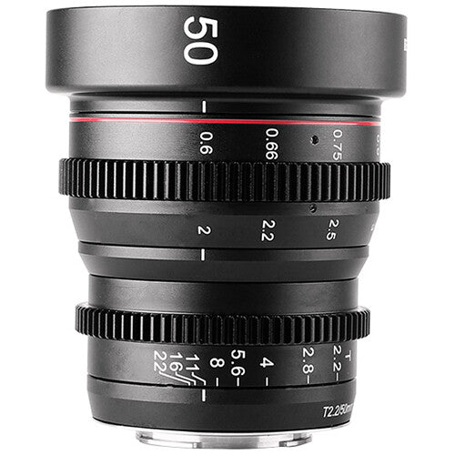 Add this E-mount 50mm T2.2 Manual Focus Cinema Prime Lens from Meike to your Sony camera kit for a bright cine prime suitable for Super35/APS-C high-resolution cine cameras. The lens produces results with low distortion, while its multilayer coating reduces flare and ghosting for greater contrast and color accuracy. The fast T2.2 aperture allows working in difficult lighting conditions and offers increased control over depth of field, allowing for smooth, circular bokeh, and it has little flaring and little to no focus breathing.