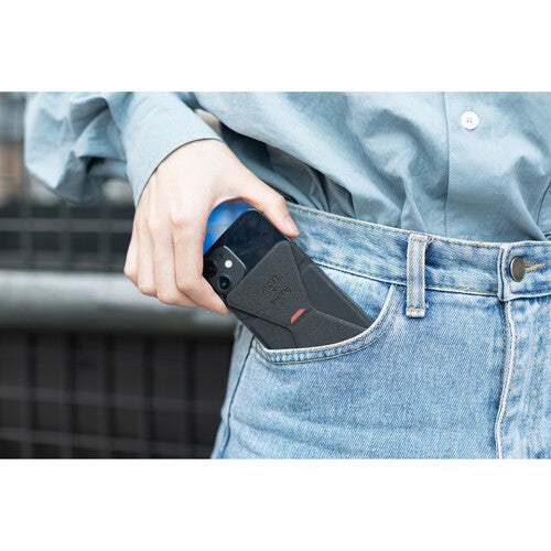 Give your iPhone a stand with a click using the SmallRig MOFT X SmallRig Magnetic Stand for iPhone 12. Made from durable polyurethane, this stand sticks to the back of your iPhone 12 via two strong built-in magnets. It's Apple-certified to work with MagSafe cases and supports wireless charging. Once attached, you can quickly fold it out into a stand to prop up your iPhone 12 in either portrait or landscape orientation. It's ideal for keeping tabs on incoming message and notifications, or to view streaming movies and YouTube videos. It folds flat in a snap when you're done, and with it being only 0.2" thin, you can easily hold your phone with one hand or slide it back into your pocket.