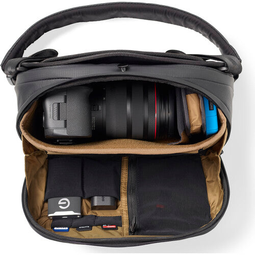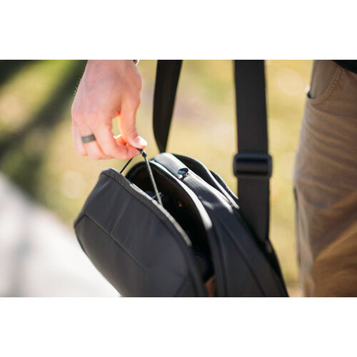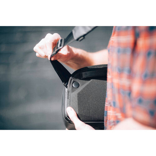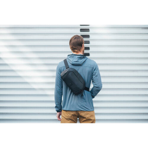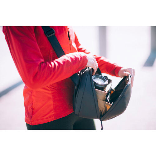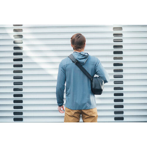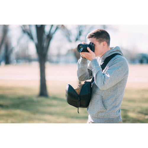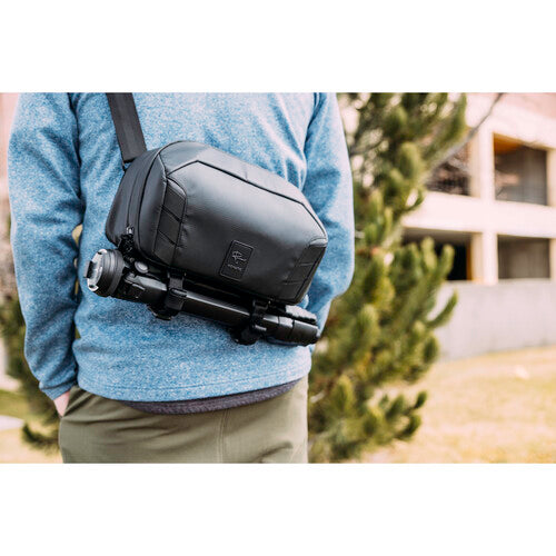 - The front and bottom of the sling feature external MOLLE hooks (MOLLE straps not included) so you can attach larger items like a tripod or jacket