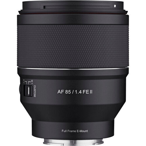 Combining advanced optics with sophisticated handling, the Samyang AF 85mm f/1.4 FE II is a lightweight and compact short telephoto lens ideal for portraits and low light scenarios. In its second generation it manages to reduce both size and weight while improving optical and autofocus performance. Featuring 11 optical elements arranged into 8 groups, it utilizes a series of high-refraction and extra-low dispersion elements to achieve a glass surface that delivers smooth, creamlike bokeh. For this same purpose, the lens is equipped with a nine-bladed aperture diaphragm. The autofocus system has been reworked with an STM motor that acquires subjects quickly and quietly and can be controlled in a number of ways thanks to its customizable AF Lock button and focus ring. The body of the lens, made entirely out of metal, sports full weather sealing to keep out moisture, dust, and other contaminants.