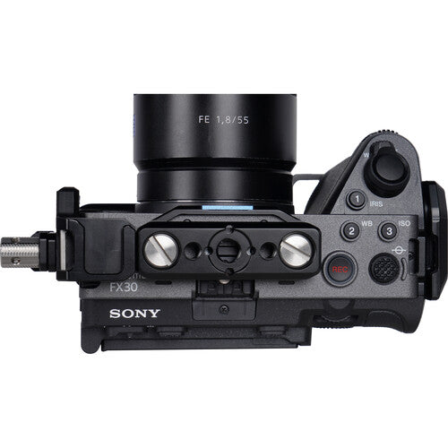 Expand the mounting capabilities of your Sony FX3 or FX30 mirrorless camera with the black Full Camera Cage Kit from Sirui. The kit includes a full camera cage and a top handle. Designed to securely mount onto the camera body, the cage provides a protective structure to attach all sorts of accessories via its 1/4"-20 and 3/8"-16 threads, NATO rails on the top and side, an HDMI cable clamp, and a shoe mount on top. Locking screws prevent the camera from moving or twisting inside the cage, and rubber pads protect the camera from scratching. The top handle adds two more shoe mounts and multiple mounting threads for even more accessory mounting.