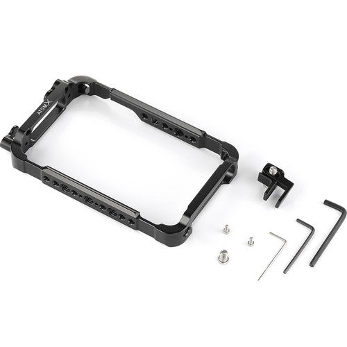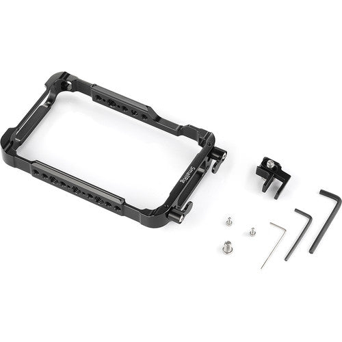 The SmallRig CMA2209 Cage for Atomos Ninja Series provides a formfitting exoskeleton and accessory mounting for your Ninja 5" recorder/monitor. Features include top and bottom NATO rails, 1/4"-20, 3/8"-16, and ARRI-style accessory threads, and a detachable HDMI cable clamp. Secure the cage to your monitor with the included 1/4"-20 screw on the top and with the two M3 screws on the left side. The CMA2209 cage includes one HDMI cable clamp, and it supports an optional second clamp. For backward compatibility with Atomos Master Caddy II, the cage also features drive locks that incorporate the added size of standard 2.5" drives in the cage's form factor. Compatible with the Ninja series sun hood frame, this cage also incorporates slots for attaching a neck strap. Note that the Ninja series sun hood needs to be fitted before mounting your monitor in the cage.