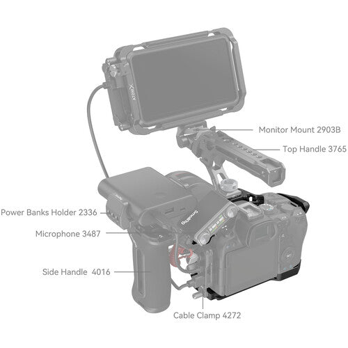 Provide accessory mounting and protection for your Canon EOS R6 Mark II camera with the lightweight aluminum "Black Mamba" Camera Cage from SmallRig. This formfitting cage features a sleek, rough-black finish with carbon fiber-style details, it maintains access to the camera's controls, battery, and SD card slot, and it features a variety of mounting options.