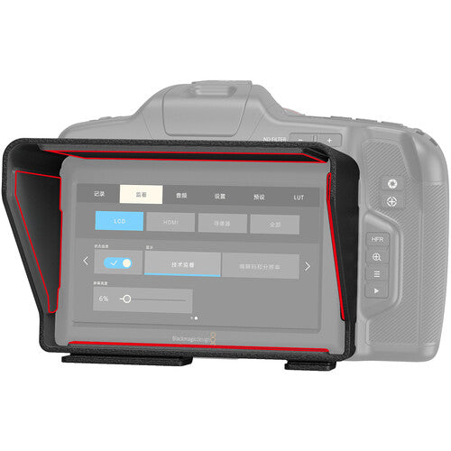 Protect your Blackmagic Design Pocket Cinema Camera 6K Pro from sunlight and glare with this Sun Hood from SmallRig. The sun hood snaps directly onto the sides of the 6K Pro or 6K G2 tilting display without tools and is secured using an integrated hook-and-loop strip.