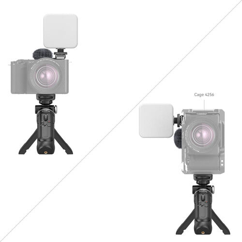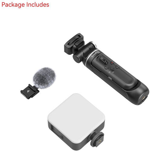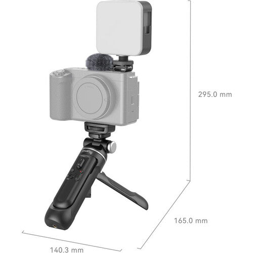 Equip your Sony ZV-E1, ZV-E10, ZV-1, or ZV-1F camera with this Vlogging Accessory Bundle from SmallRig for all the tools you need for your content creation. Included in the bundle are the SR-RG1 wireless shooting grip, which doubles as a tabletop tripod with a detachable remote, the PG6 LED video light, and a cold shoe adapter with a furry windscreen specifically designed to cover your camera's built-in microphone.