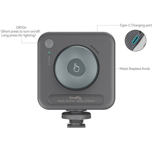 Brighten your subjects with this compact gray P96 LED Video Light from simorr. This variable-color LED light features a high CRI of 95+ for accurate color rendering, a 120° beam angle, an adjustable 2700 to 6500K color temperature, and 0 to 100% dimming, and it has a maximum brightness of 1100 lux at 1'.