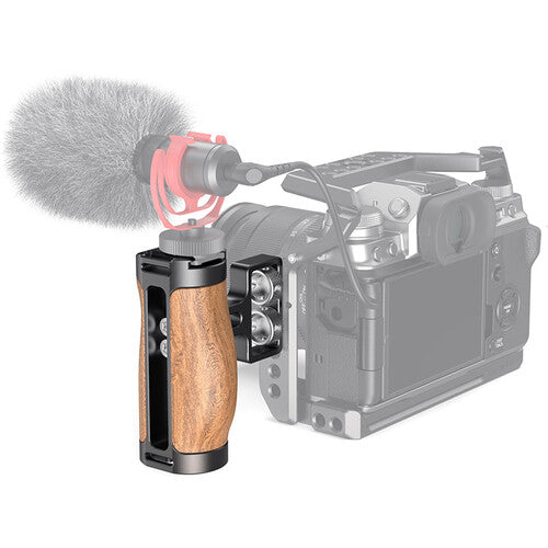 Add a handgrip to your rig with this Mini Wood Side Handle with Dual 1/4"-20 Screw Mount from SmallRig. The ultracompact handle provides a left- or right-handed grip for your camera cage or rig. It can support rigs and accessories up to 7.7 lb.
