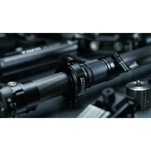 The V-mount battery plate mounts onto the rig and allows you to power accessories and your gimbal via the system's extension post using a single, optional high-capacity battery and the included power cable. The wireless thumb controller mounts onto the rig so you can control the gimbal's movement without needing to be close to the gimbal. It connects to the receiver via 2.4 GHz Wi-Fi from up to 229' away (line-of-sight) and features a shoe mount so it can mount onto a handle or other rigging. The included smartphone mount allows you to add a smartphone to control your gimbal as well as preview the image, and the monitor bracket allows you to add an optional monitor to your rig.