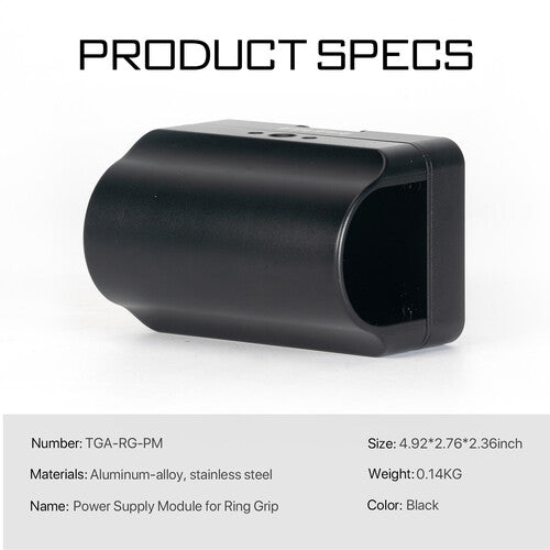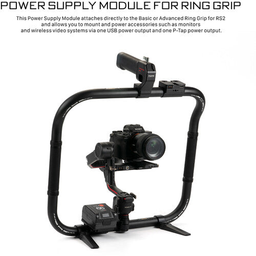 Power your accessories when using the Ring Grip or Advanced Ring Grip with your DJI RS 2 gimbal using this Power Supply Module from Tilta. The compact module mounts onto the horizontal bracket and uses electronic contacts to provide power output to its one USB-A power and one D-Tap port. The module features multiple mounting threads and anti-twist mounts to conveniently power additional accessories when mounted onto the Ring Grip with your DJI RS 2 gimbal stabilizer. The module is made from durable aluminum and stainless steel components.