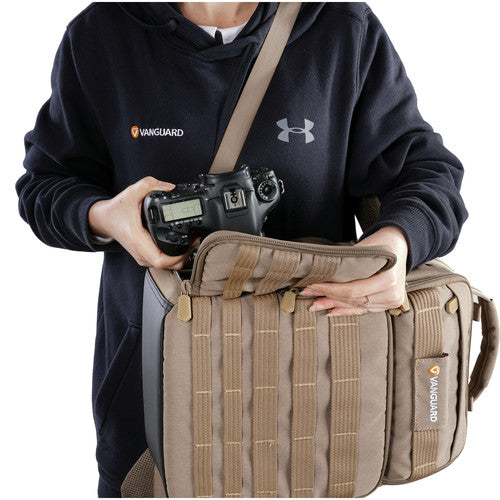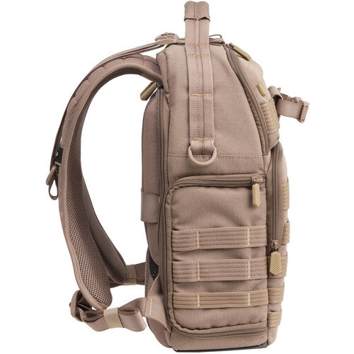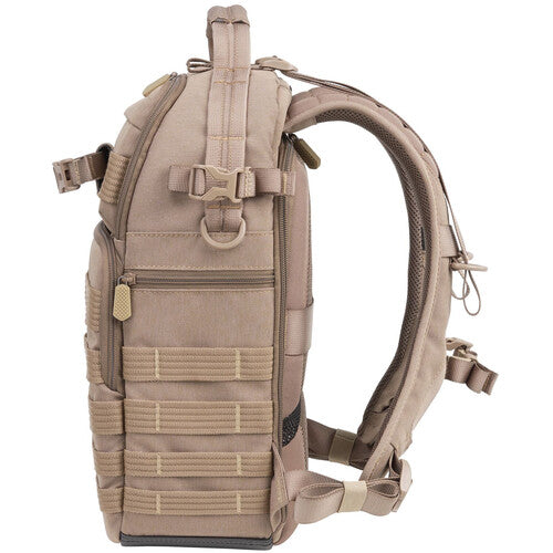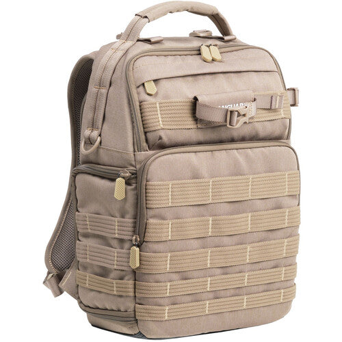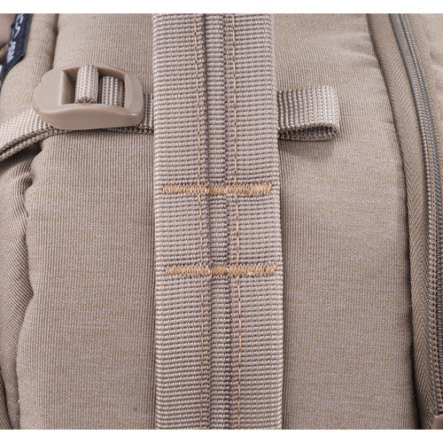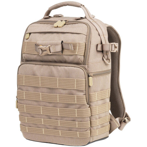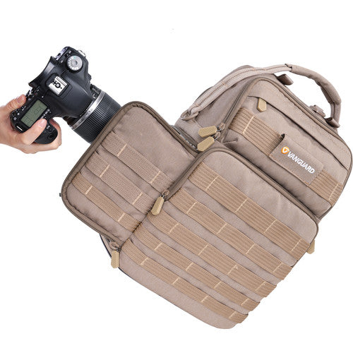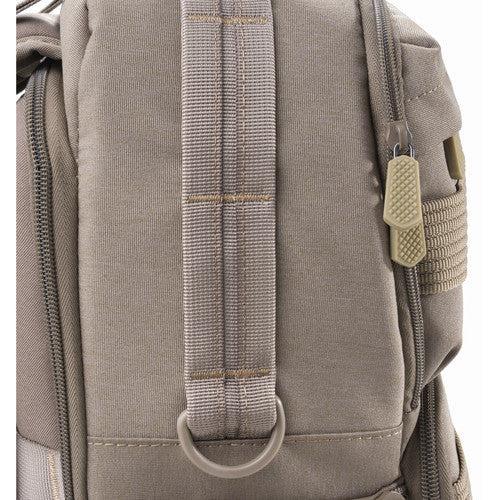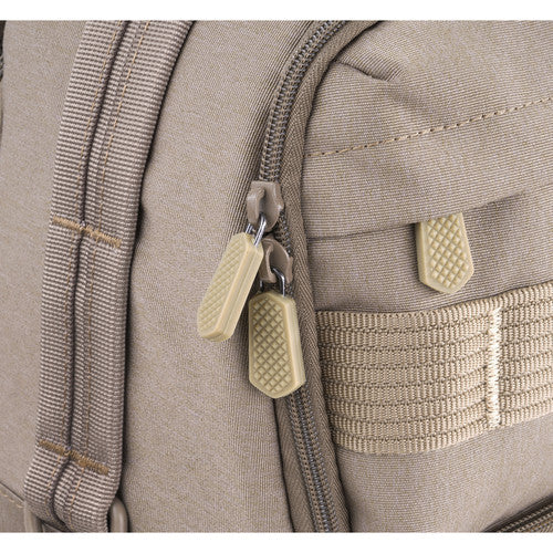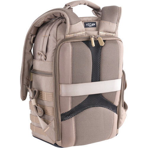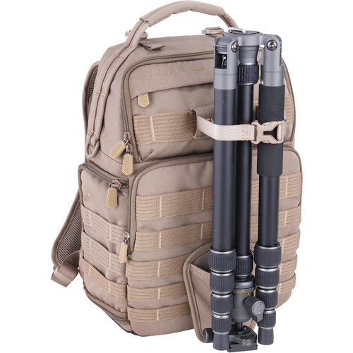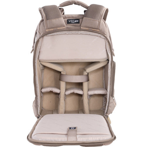 Store, transport, and protect your mirrorless camera, up to five lenses, a travel tripod, and related accessories with this beige VEO RANGE T37M Backpack from Vanguard. The pack features an inner padded sleeve for a 9.7" tablet, padded interior touch-fastening dividers, and multiple storage pockets. Photographers will appreciate the accessory straps on the front of the pack. Carry the pack with the top handle or wear it with the padded shoulder straps, sternum strap, and padded back panel. A full rain cover is included.