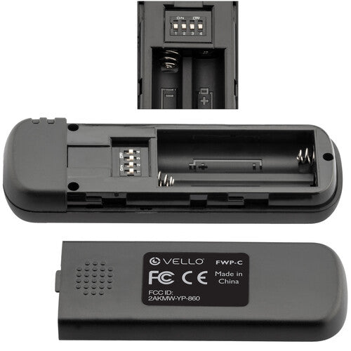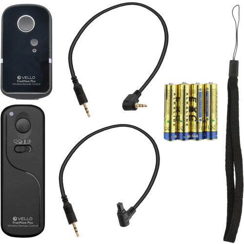 The FreeWave Plus II Remote Shutter Release from Vello is a wireless shutter release set that allows select Canon cameras to be triggered remotely to get shots from distances as far as 320' away. Multiple available shooting modes allow shooting in single, continuous, four-second delay, and bulb modes. The dual-function release enables pre-focusing by half-pressing the trigger button, then firing the shutter release by fully pressing. LED indicators confirm pre-focus and exposure status. The compact transmitter and remote receiver unit are each powered by two AAA batteries.